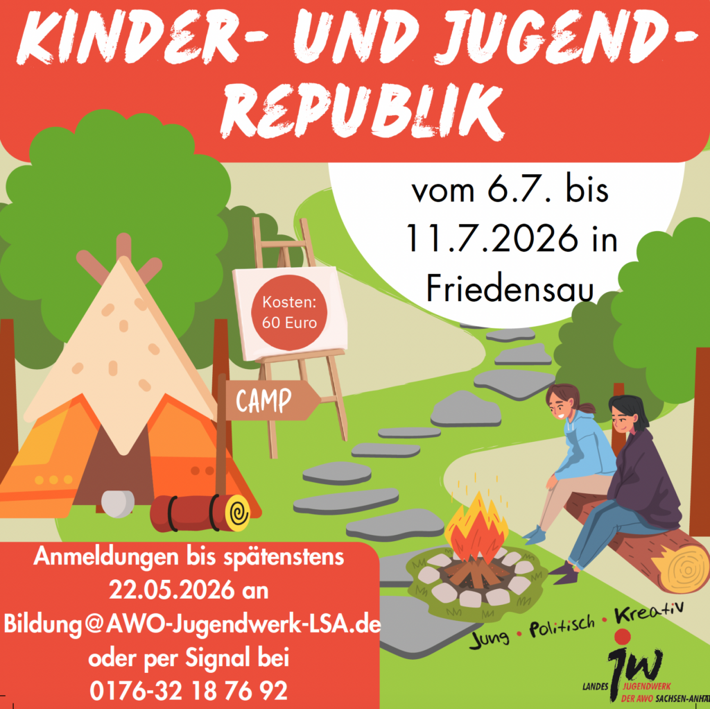 Im Sommer 2024 (6.7-11.7.2026) wird das Landesjugendwerk der AWO Sachsen-Anhalt e.V. in Anlehnung an die Kinderrepubliken der Arbeiterbewegung in den 1920er Jahren auf dem Zeltplatz Friedensau eine einwöchige Kinder- und Jugendrepublik durchführen.